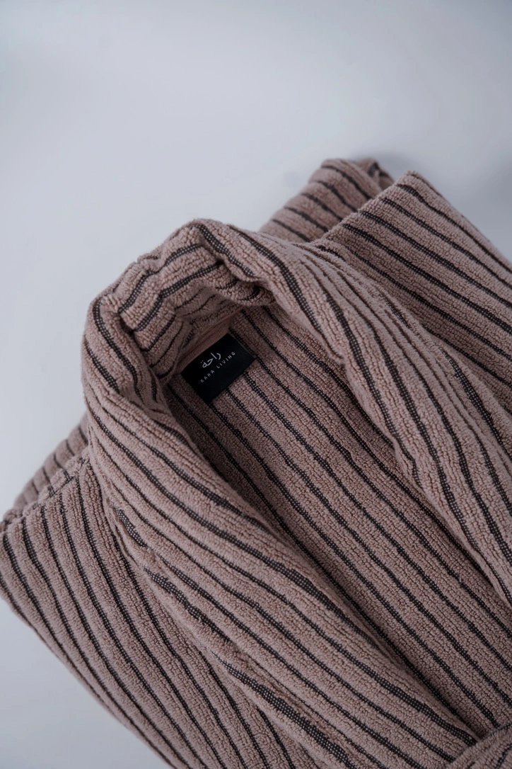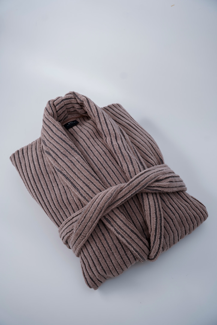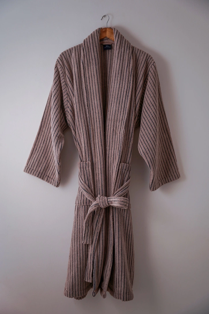 Experience luxury and comfort with the Pinstripe Bathrobe, crafted from 100% cotton in a refined zero-twist weave. The subtle pinstripe design adds a touch of sophistication, while the fabric remains incredibly soft, absorbent, and gentle on the skin. The zero-twist cotton construction ensures the robe is lightweight yet durable, offering a plush feel that stays fresh and soft even after repeated washes. Perfect for stepping out of the shower or lounging at home, the Pinstripe Bathrobe combines style with everyday practicality.